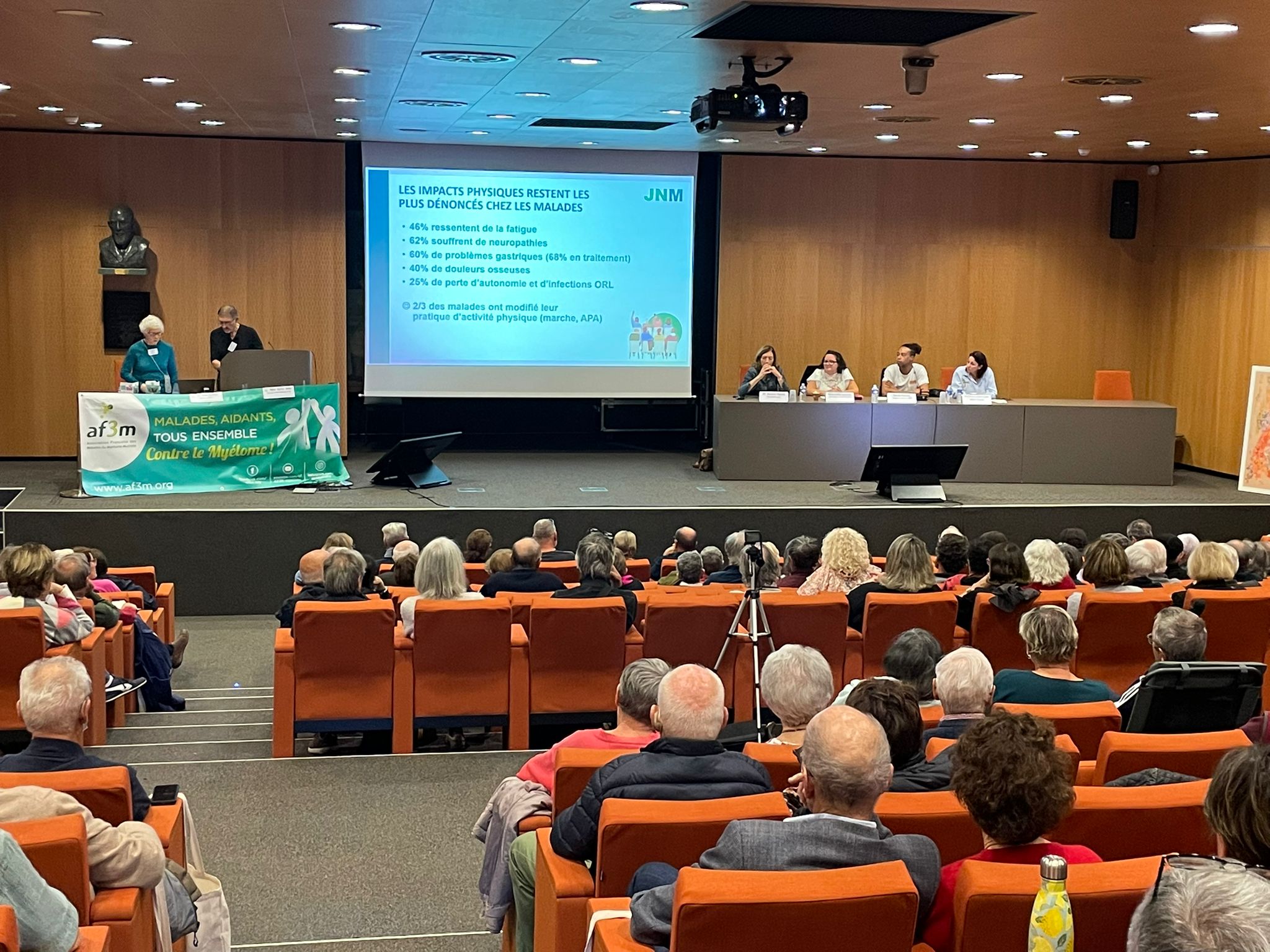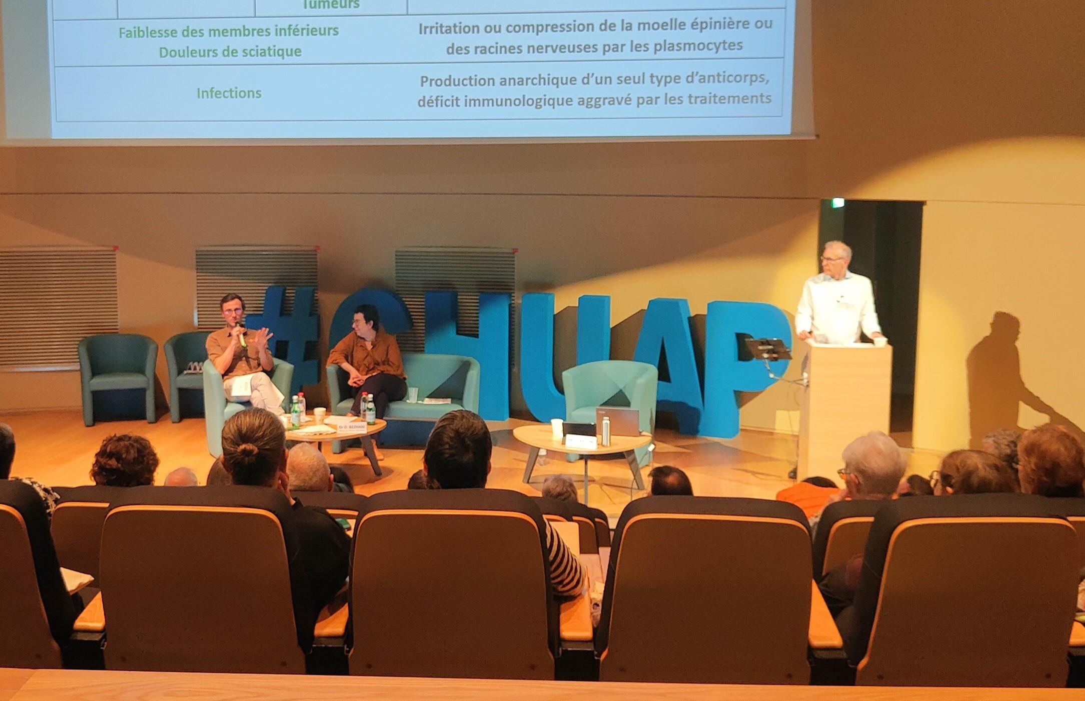 The event featured two parts: the first focused on medical aspects, covering myeloma basics, diagnosis, treatments for patients eligible and ineligible for autologous stem cell transplant, relapse management, and innovations in research. This year, Professor Philippe Moreau highlighted that “immunotherapy is a revolution”.