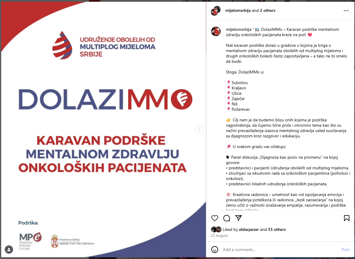 Follow their journey – you can follow the work of this member organisation on social media to stay informed with all they are up to in helping to raise awareness of multiple myeloma in Serbia and beyond. (Facebook and Instagram)